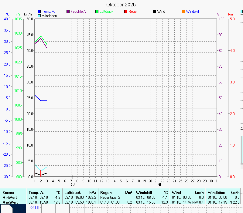 Die dargestellten Werte repräsentieren die Daten des aktuellen Tages! Der Luftdruck ist auf Meereshöhe bezogen! |